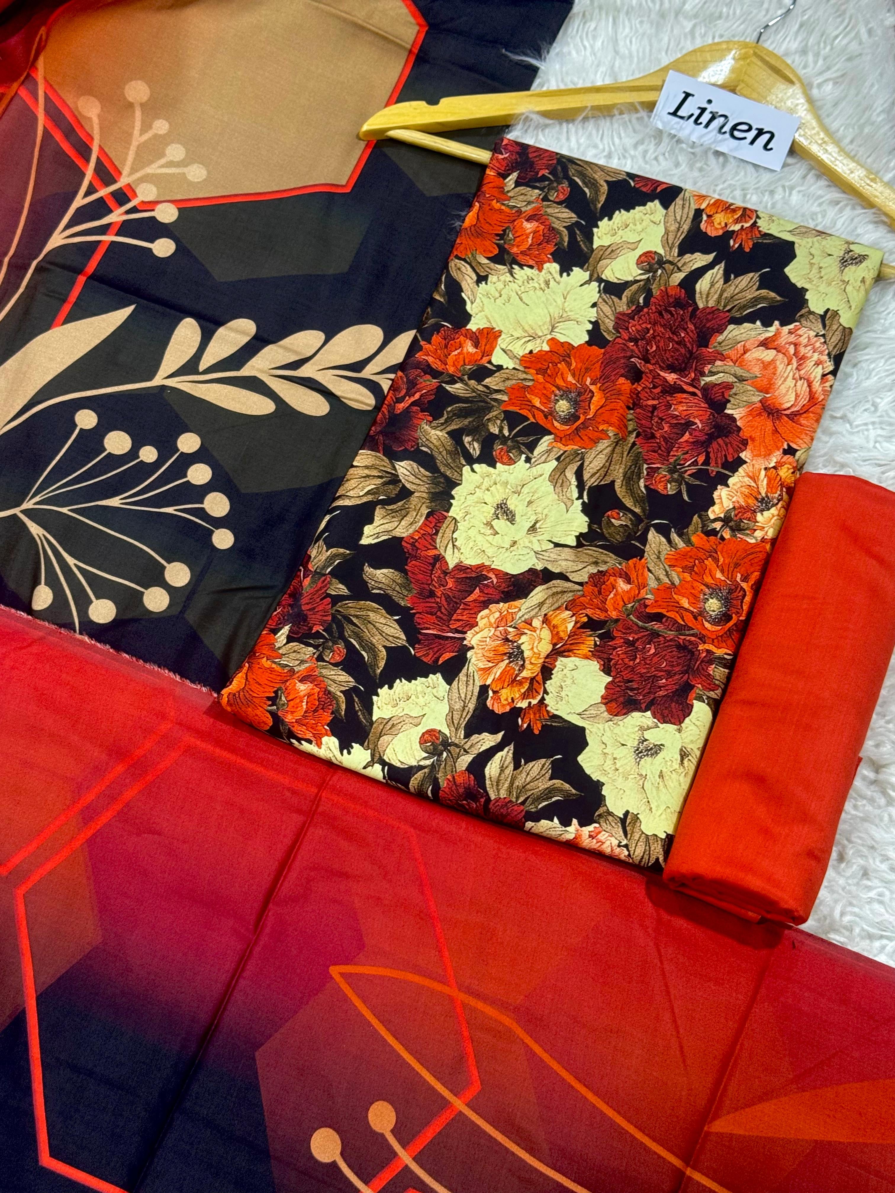 ALKARAM LINEN DIGITAL PRINT 3PC D115