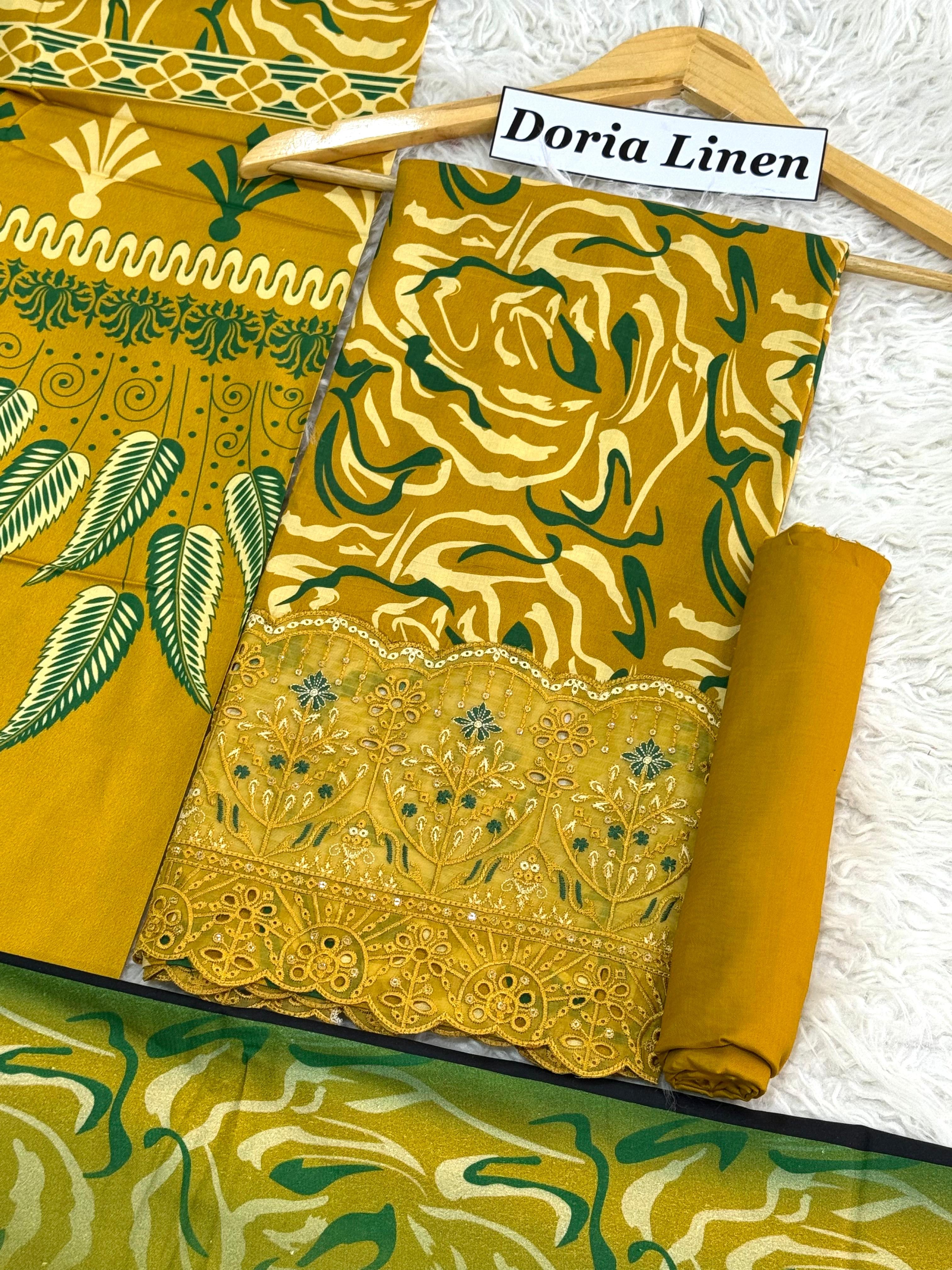DORIA LINEN DIGITAL PRINT WITH DAMAN APPLIC WORK 3PC D05