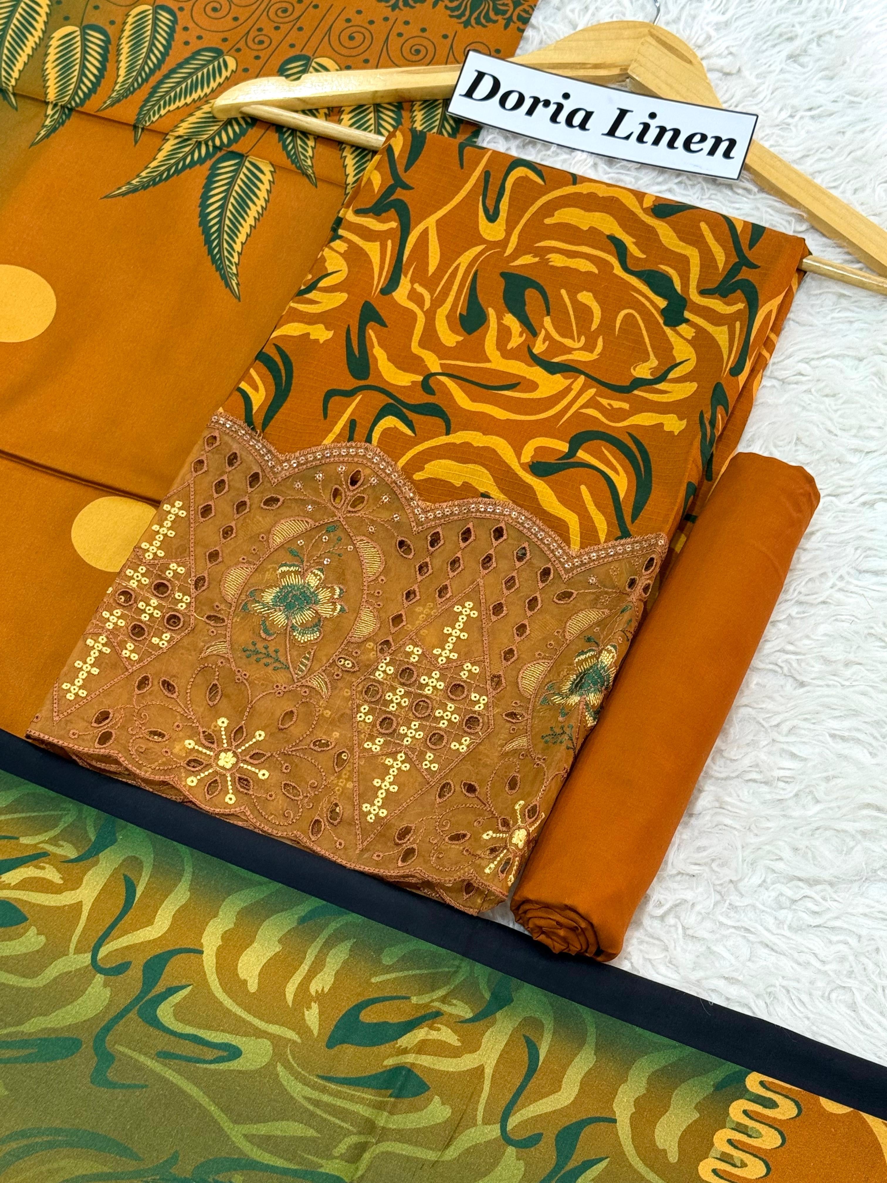 DORIA LINEN DIGITAL PRINT WITH DAMAN APPLIC WORK 3PC D07
