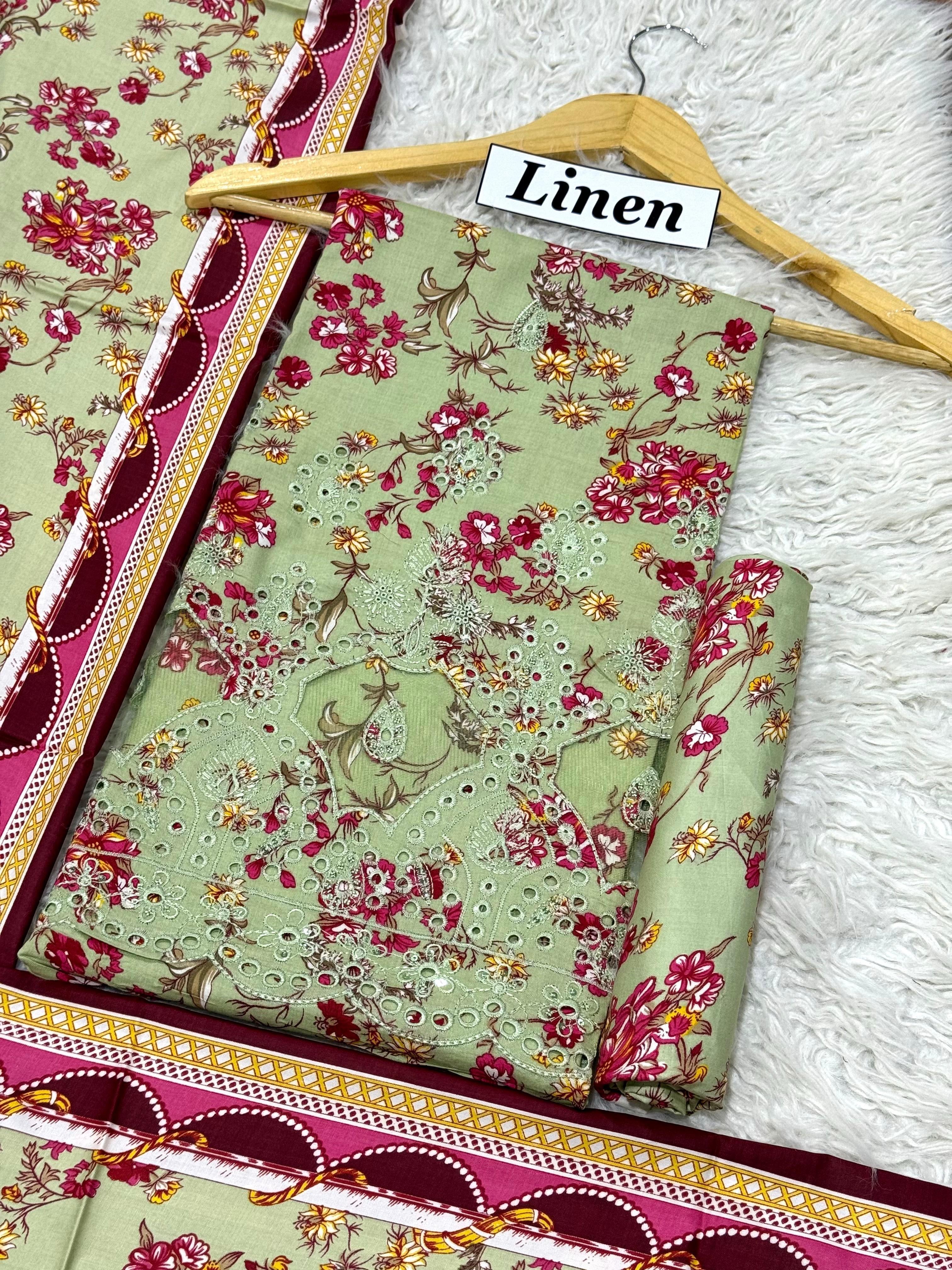 LINEN DIGITAL PRINT WITH DAMAN APPLIC WORK 3PC D15 – ZM Textile