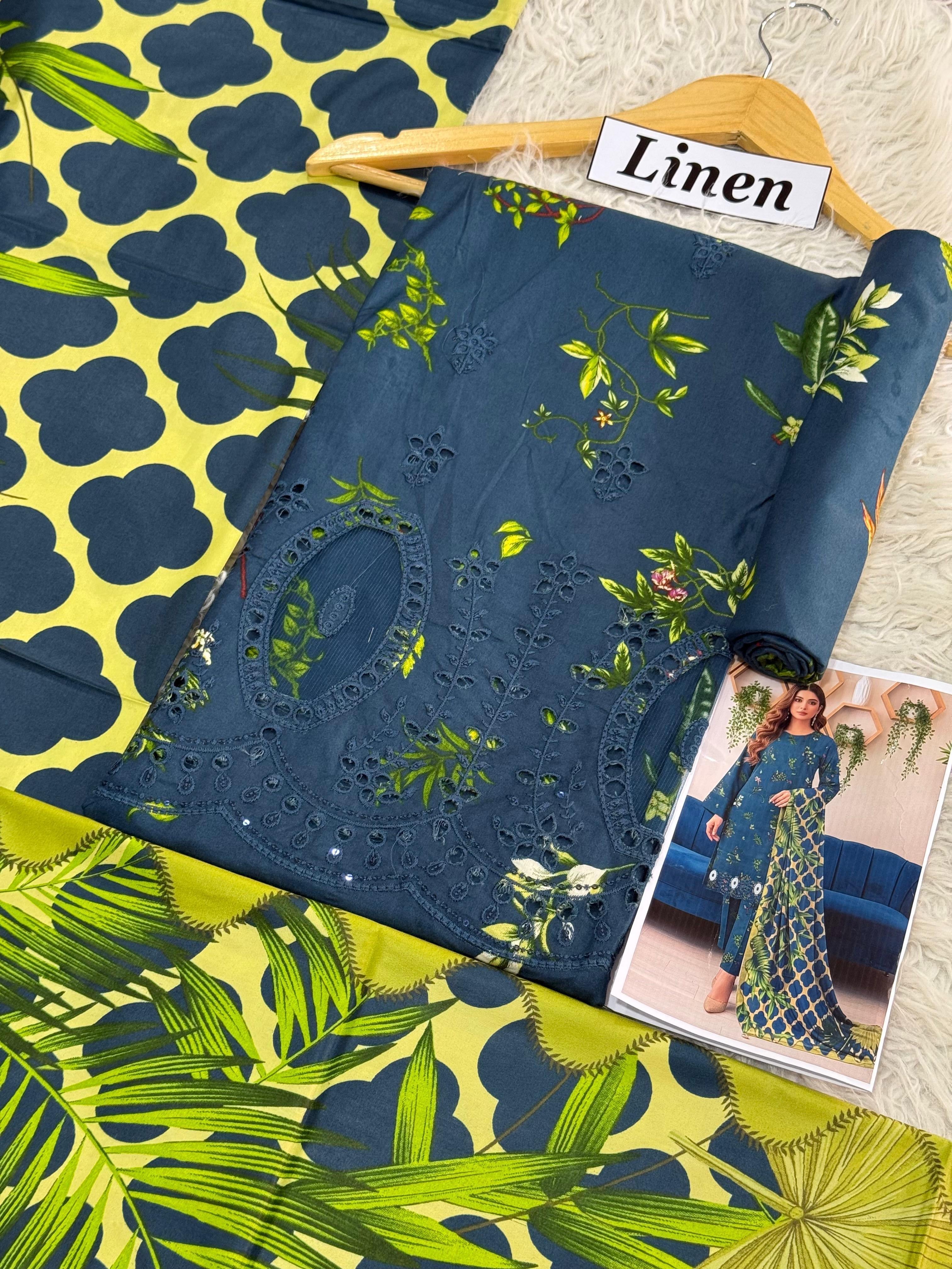 LINEN DIGITAL PRINT WITH DAMAN APPLIC WORK 3PC D20 – ZM Textile