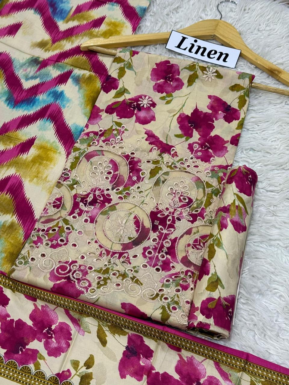 LINEN DIGITAL PRINT WITH DAMAN APPLIC WORK 3PC D32 – ZM Textile