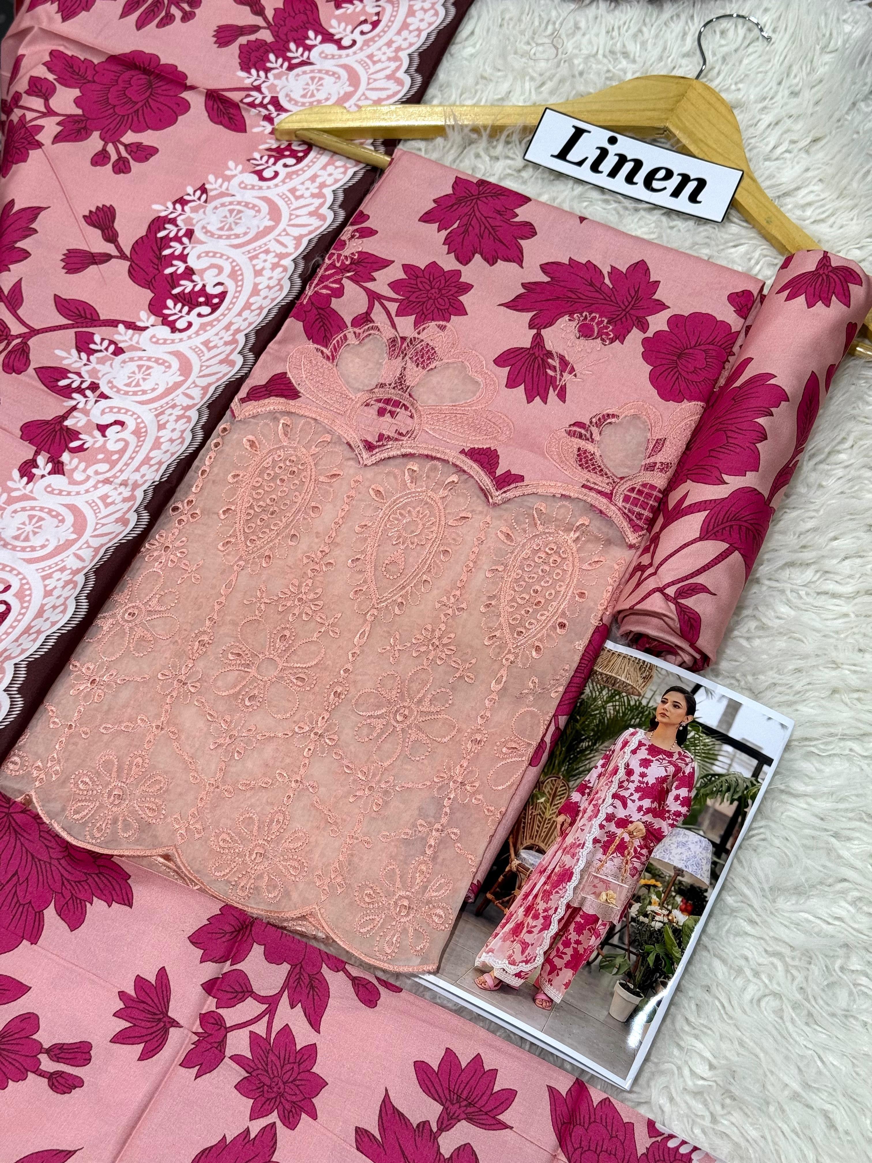 LINEN DIGITAL PRINT WITH DAMAN APPLIC WORK 3PC D33 – ZM Textile