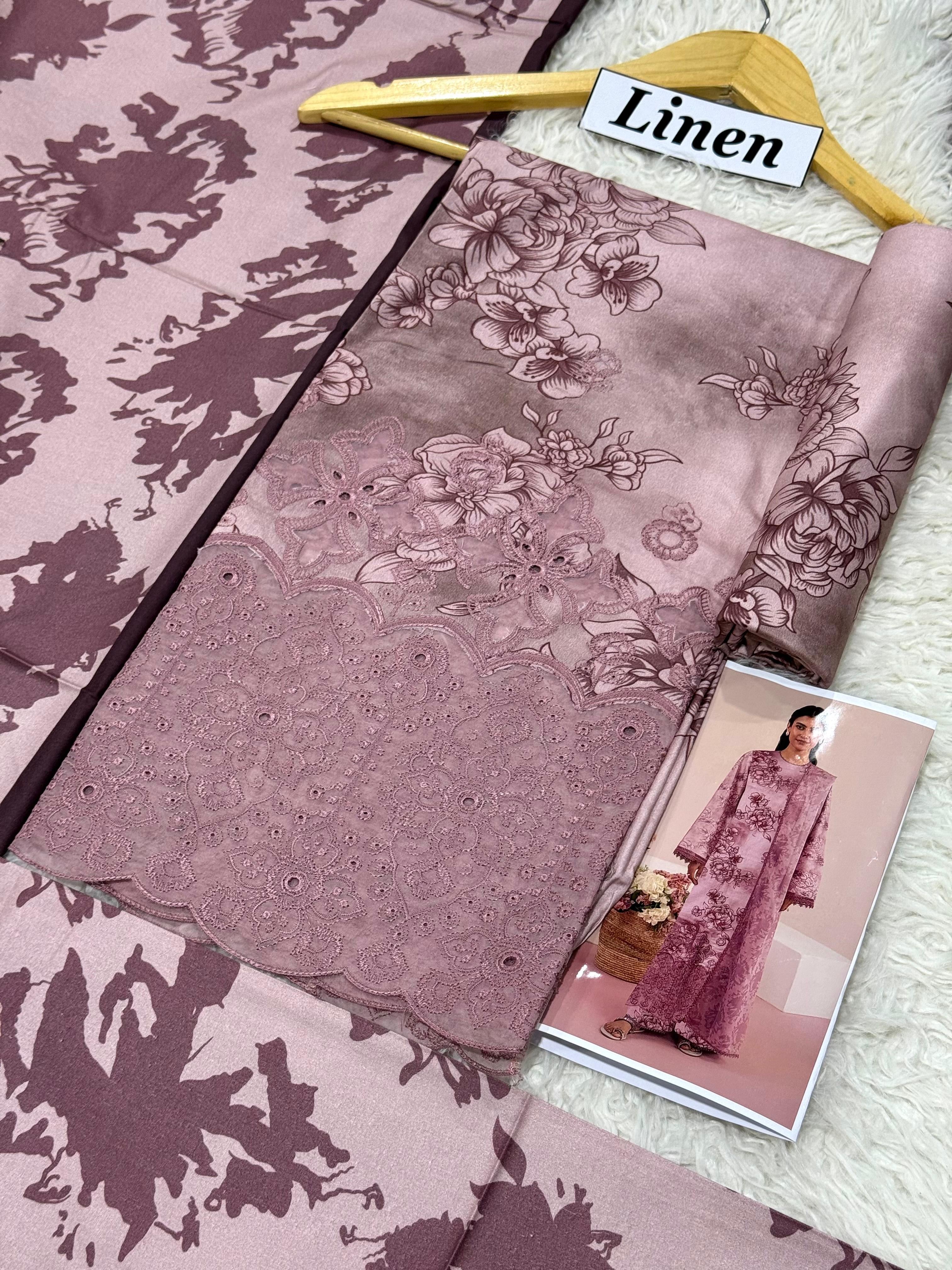 LINEN DIGITAL PRINT WITH DAMAN APPLIC WORK 3PC D34 – ZM Textile