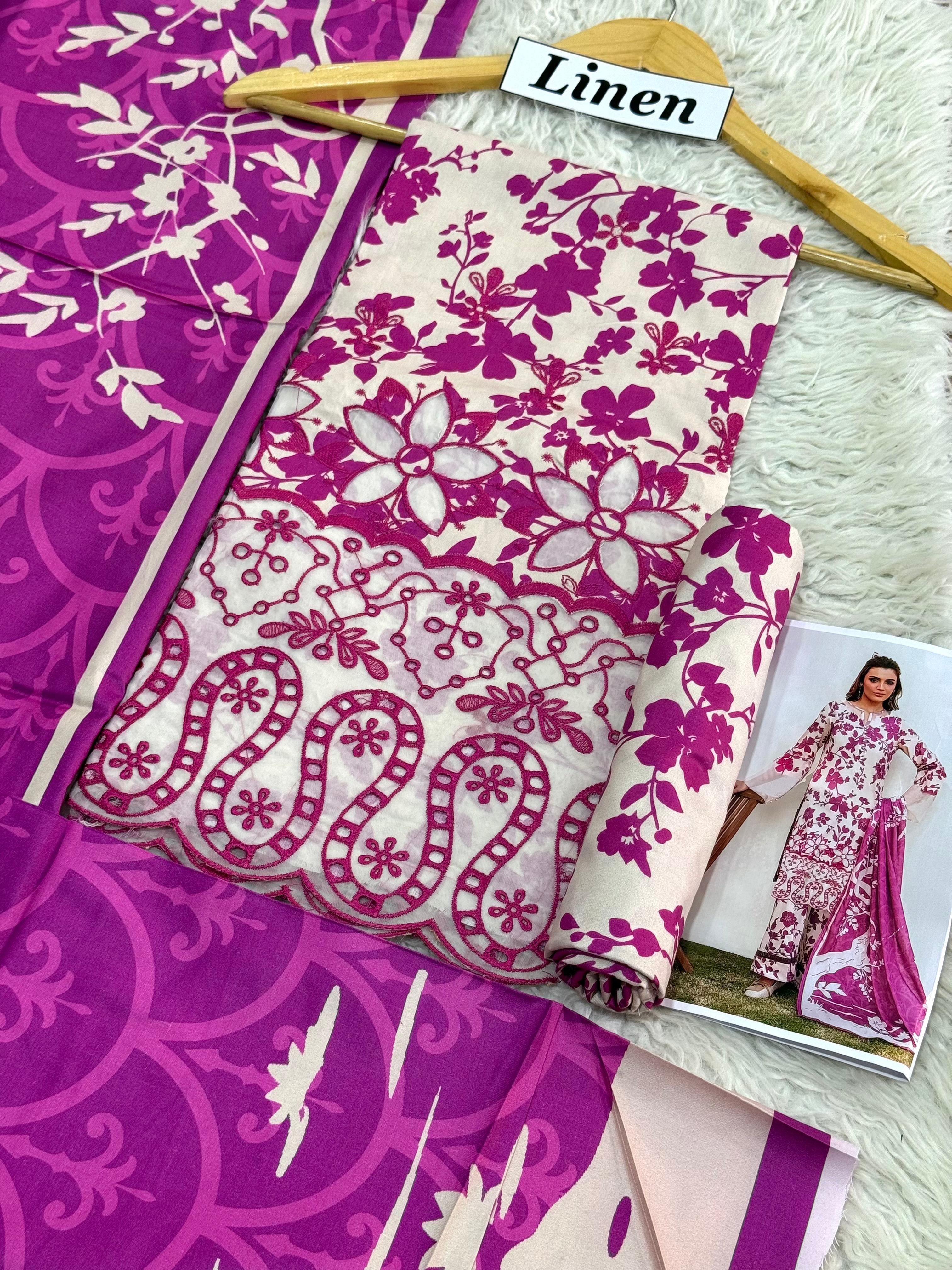 LINEN DIGITAL PRINT WITH DAMAN APPLIC WORK 3PC D36 – ZM Textile