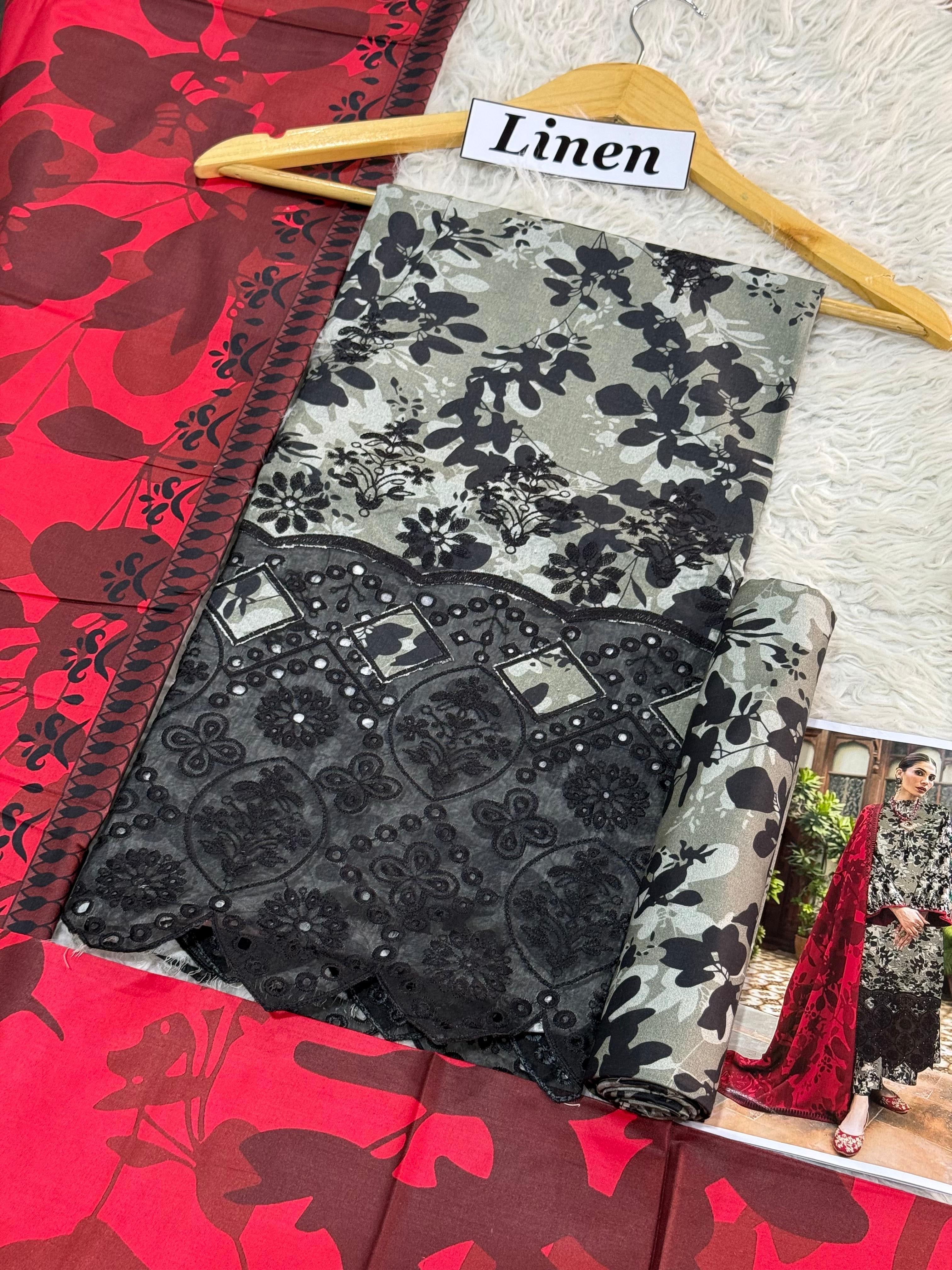 LINEN DIGITAL PRINT WITH DAMAN APPLIC WORK 3PC D39 – ZM Textile