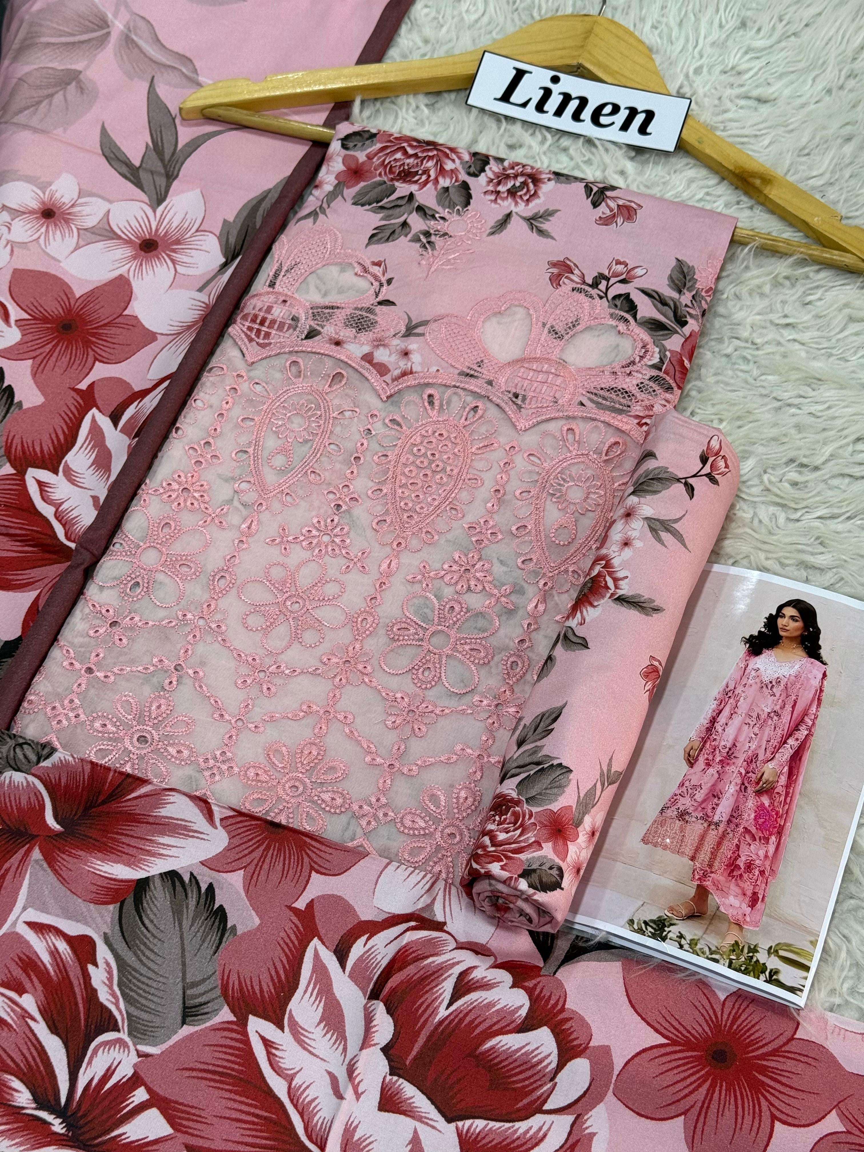 ๐๐ป *Shirt: Digital print doria linen with daman applic work*