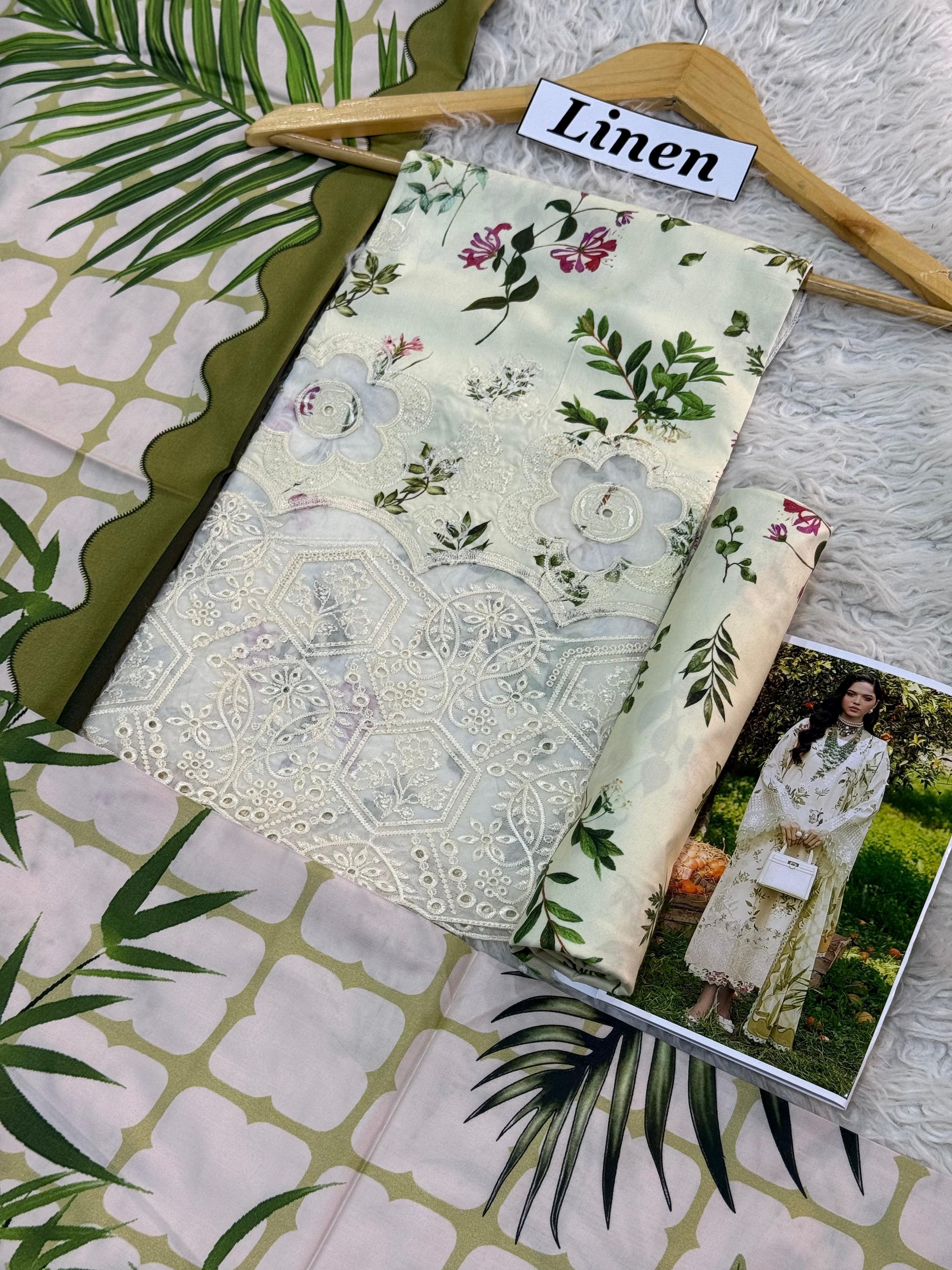 LINEN DIGITAL PRINT WITH DAMAN APPLIC WORK 3PC D41 – ZM Textile